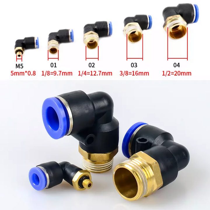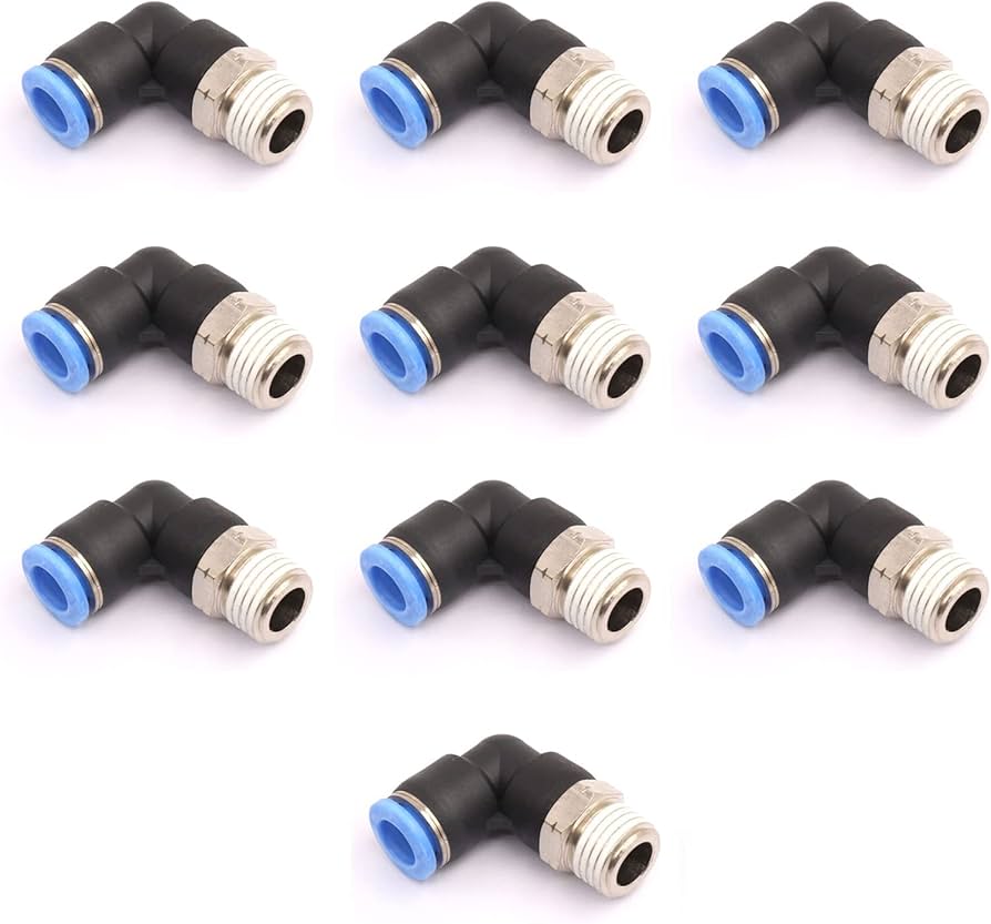 Pneumatic elbow fitting 12-04 designed for connecting a 12 mm air tube to a 1/2″ threaded port. Commonly used in compressor, pneumatic, and automation systems. Provides a secure and airtight connection between the tube and threaded fitting, made of high-quality plastic and metal materials for long-lasting durability